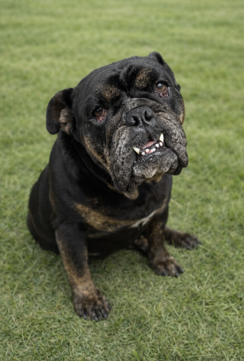 Mochi was surrendered to us after her owner could no longer afford her medical care. She’s been through a lot—skin infections, double cherry eyes, and surgeries—but she’s come out the other side with her signature “permanent cherries.” Don’t let the redness fool you—she’s still the prettiest bulldog on the block, rocking her look with confidence like the queen she is.