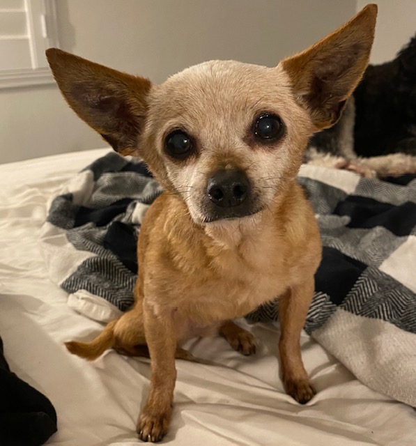 These two inseparable sisters needed two names that fit together to encompass their bond. One of my favorite foods are pepperoncinis and then I just knew exactly what to name them! Pepper and Chini came from a household with 8 outdoor Chihuahuas. The landlord forced them to rehome some of them and they chose to keep the puppies and rehome the seniors. We love our seniors so we could not resist helping them! They are living the best life together!