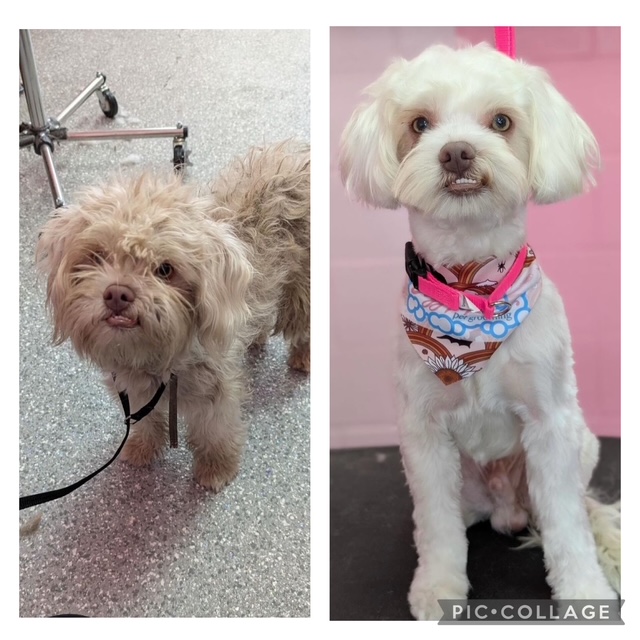 Look at this transformation! This cutie was running on the streets of Compton, covered in fleas, extremely matted, and two horrible ear infections. You would never guess how tiny and adorable he was under all that matted fur! Ruffino is the sweetest, most grateful little guy and living his best life with a wonderful family!